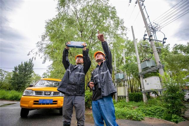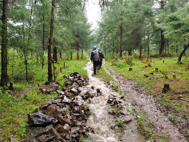 國網吉林送變電公司員工冒雨巡護山區(qū)線路。