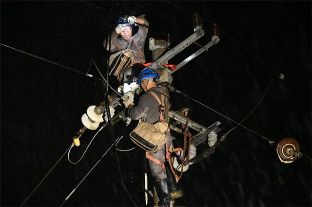 國網福建南平順昌縣供電公司員工搶修10千伏峰臺線金鑫支線故障。