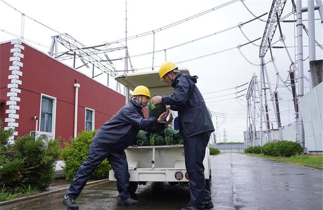 國網上海超高壓公司員工在±500千伏南橋換流站開展防臺風防汛準備工作。