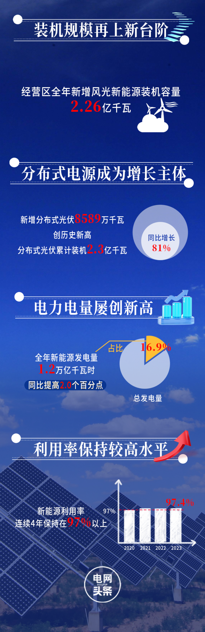 2023年是全面貫徹黨的二十大精神的開(kāi)局之年,也是實(shí)施“十四五”規(guī)劃承上啟下的關(guān)鍵一年。國(guó)家電網(wǎng)公司認(rèn)真貫徹落實(shí)黨中央關(guān)于積極穩(wěn)妥推進(jìn)碳達(dá)峰碳中和、規(guī)劃建設(shè)新型能源體系等決策部署,加快構(gòu)建新型電力系統(tǒng),引領(lǐng)帶動(dòng)源網(wǎng)荷儲(chǔ)全環(huán)節(jié)綜合施策,全力服務(wù)新能源高質(zhì)量發(fā)展。