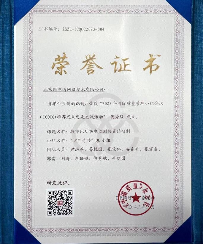 中國電力網(wǎng)訊(通訊員:張俊偉) 4月17日獲悉,國網(wǎng)信通產(chǎn)業(yè)集團國電通“護電奇兵”QC小組成果《數(shù)字化反竊電監(jiān)測裝置的研制》在2023年國際質(zhì)量管理小組會議(ICQCC)推薦成果發(fā)表交流活動中獲得優(yōu)秀獎。