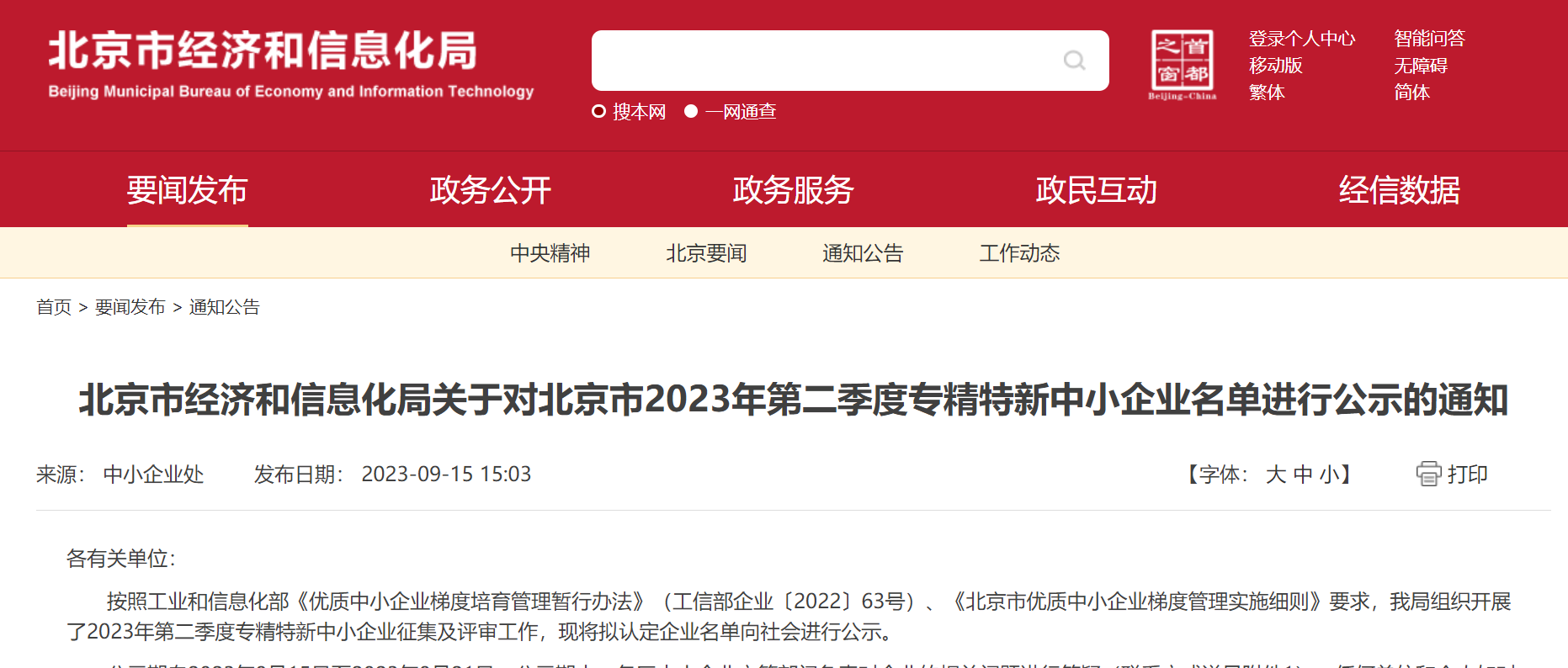 中國電力網(wǎng)訊(通訊員 時君柳) 9月15日,北京市經(jīng)濟和信息化局公布了《關于對北京市2023年第二季度“專精特新”中小企業(yè)名單進行公示的通知》,國網(wǎng)信通產(chǎn)業(yè)集團國電通憑借行業(yè)專業(yè)化、技術創(chuàng)新力、服務精細化從眾多參選企業(yè)中脫穎而出,獲得2023年度北京市“專精特新”中小企業(yè)榮譽稱號。