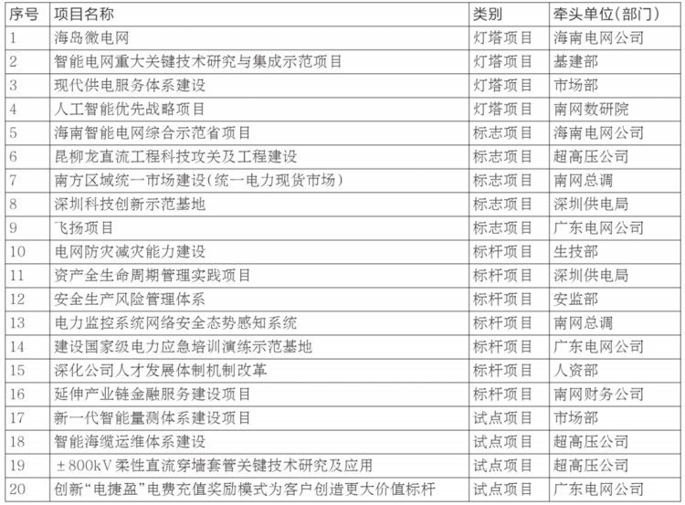 日前,南方電網(wǎng)公司對實施成果顯著、貢獻(xiàn)突出的20個“四類項目”優(yōu)秀團(tuán)隊予以通報嘉獎,其中燈塔項目4個、標(biāo)志項目5個、標(biāo)桿項目7個、試點項目4個。