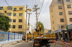 在現(xiàn)場(chǎng),地勤人員進(jìn)行路障、警示牌與圍欄等安全防護(hù)設(shè)置,帶電作業(yè)人員乘坐絕緣斗臂車到達(dá)作業(yè)位置,對(duì)線路進(jìn)行帶電作業(yè),通過(guò)新建臨時(shí)電桿,將“占道電桿”分支線路所有負(fù)荷轉(zhuǎn)供,為接下來(lái)的不停電“零感知”地下遷移工作打下基礎(chǔ)。“這次的項(xiàng)目不僅可以拆除‘占道電桿’,同時(shí)對(duì)年久雜亂的線路‘蜘蛛網(wǎng)’還可以進(jìn)行集中整理,既美化了市容市貌,又解決了線路存在的安全隱患。”現(xiàn)場(chǎng)負(fù)責(zé)人張偉說(shuō)。目前,該項(xiàng)工程正根據(jù)工程計(jì)劃有序進(jìn)行,計(jì)劃在11月底完工,徹底解決車輛通行安全隱患,暢通“惠民路”讓廣大居民用電無(wú)憂、安全出行。