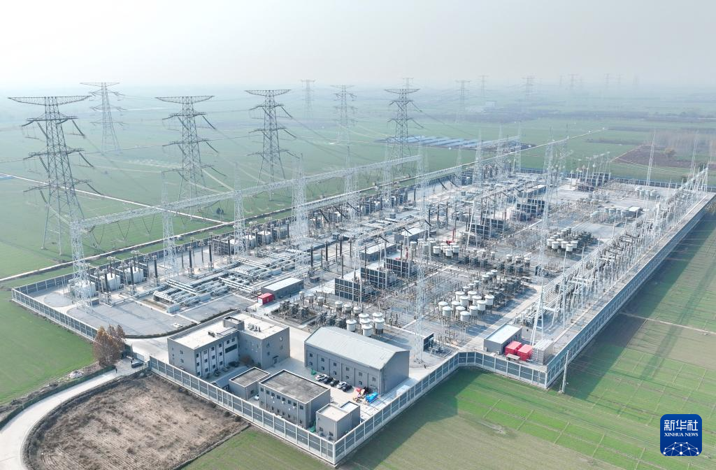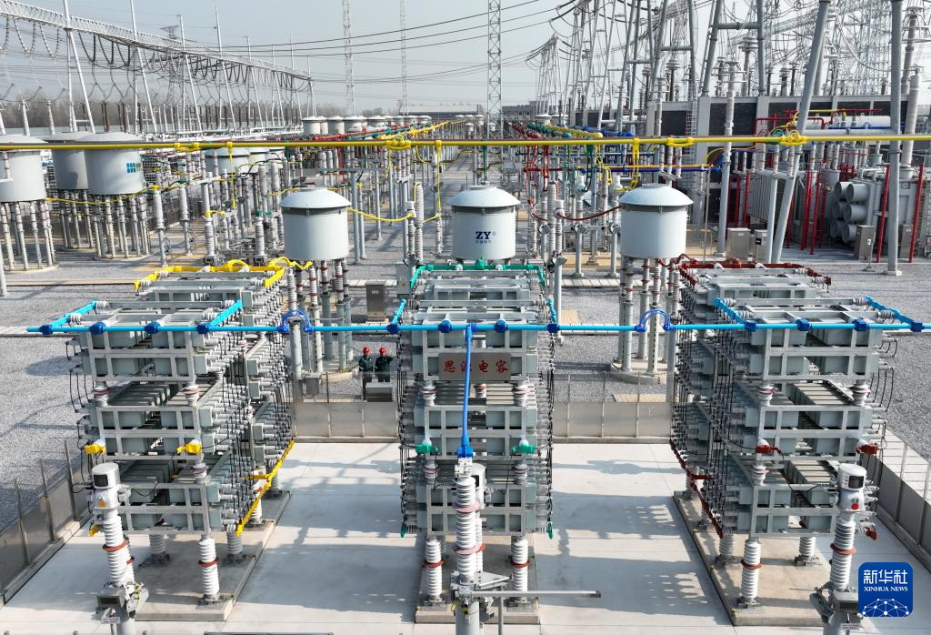 11月19日拍攝的位于河北省定興縣境內(nèi)的雄安1000千伏特高壓變電站(無(wú)人機(jī)照片)。