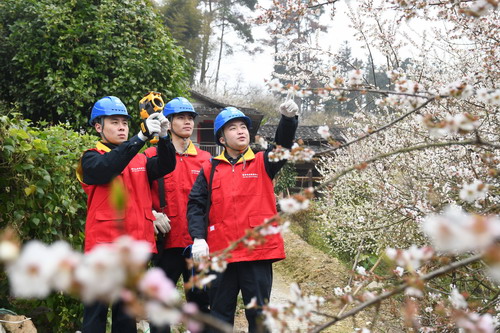 踏上蜿蜒的小路,穿過層層梅花林,國網(wǎng)福州供電公司共產(chǎn)黨員服務(wù)隊(duì)隊(duì)員們正輕車熟路地沿著高空銀線查看線路走廊,并對(duì)線路進(jìn)行日常的巡視測溫,以確保村落的供電可靠性,保障村民的生活用電需求。“我們在巡視過程中會(huì)重點(diǎn)防范鳥害和樹線矛盾帶來的季節(jié)性安全隱患。”隊(duì)員王蘇宇介紹道。