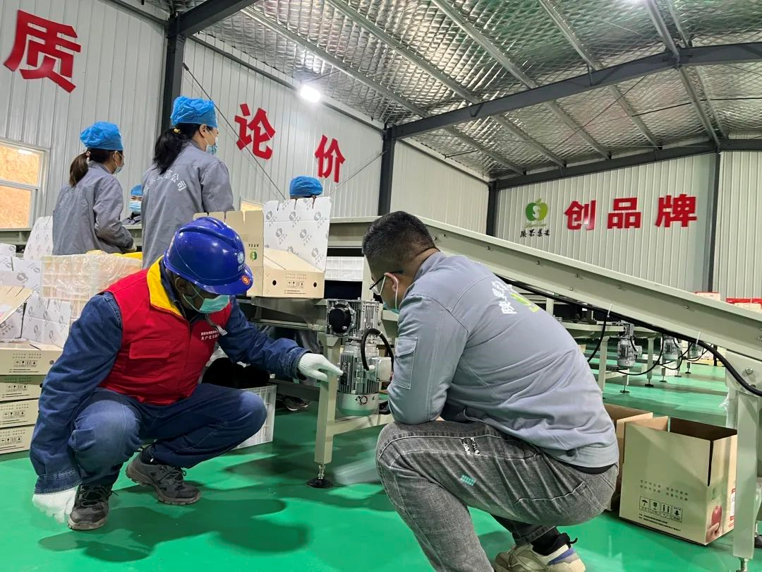 延安供電公司員工在陜西果業(yè)安塞分公司幫助客戶檢查冷庫用電設(shè)備。馬浩凱 攝