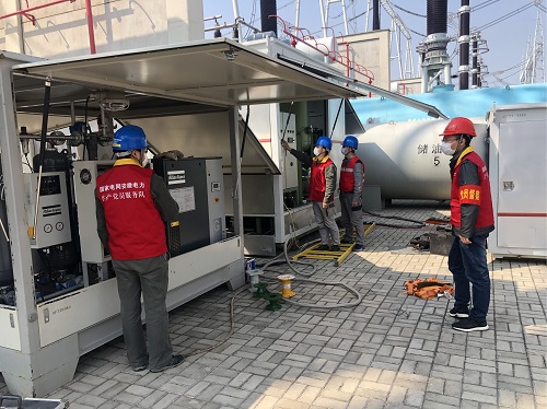 母線PT主要供輔助并網(wǎng)、繼電保護(hù)和監(jiān)測母線運(yùn)行狀態(tài)使用,特高壓淮南站在初期建設(shè)時(shí)設(shè)計(jì)安裝單相PT,今年開展了1000千伏母線B、C相加裝PT工作。公司調(diào)配精干力量組成專項(xiàng)工作小組,提前勘察作業(yè)現(xiàn)場,工地監(jiān)督人在現(xiàn)場再三強(qiáng)調(diào):“作業(yè)現(xiàn)場有真空機(jī)、空氣干燥機(jī)、200噸吊車、25噸吊車和8噸吊車等多臺(tái)大型機(jī)具,相鄰間隔帶電運(yùn)行,一定要提前規(guī)劃好車輛作業(yè)路線和機(jī)具、物料擺放位置。”由于工期緊張,每天現(xiàn)場作業(yè)時(shí)間長達(dá)12個(gè)小時(shí),公司在全力做好疫情防控工作的同時(shí),采用“工地監(jiān)督+到崗到位+全時(shí)段視頻稽查+不定期檢查”四合一的方式扎實(shí)開展現(xiàn)場安全管控工作,此次工程結(jié)束將有效降低特高壓淮南站GIS在系統(tǒng)調(diào)試和運(yùn)行中空充主母線時(shí)的放電故障率。