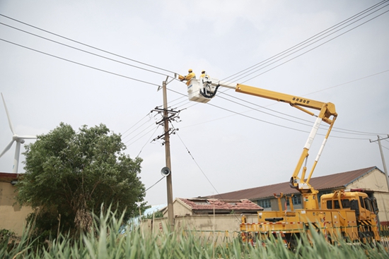 中國電力網(wǎng)訊  6月9日,在濰坊壽光市羊口鎮(zhèn)濕地公園附近,國網(wǎng)壽光市供電公司帶電作業(yè)人員對10千伏羊三線鎮(zhèn)區(qū)支線17號桿、羊四線水產城支線01號桿、羊五線57號桿進行帶電消缺,及時處理設備線夾發(fā)熱隱患,保障附近居民放心用電、清涼度夏。