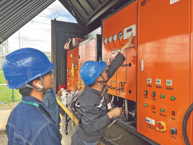 “更換過程中,為了保證舊斷路器不受潮,我們在拆下的套管及本體氣室內(nèi)及時充入高純氮氣并轉(zhuǎn)移存放。在支架及本體就位后,套管要在環(huán)境滿足條件的情況下才能進(jìn)行安裝。”國網(wǎng)甘肅超高壓公司變電檢修中心變電一次檢修五班班長邵建軍說。檢修人員在保證新斷路器安裝質(zhì)量的同時,還要開展六氟化硫氣體微水及組分檢測、斷路器常規(guī)試驗和耐壓試驗等一系列工作,確保斷路器更換質(zhì)量合格。