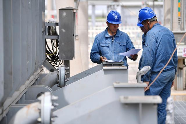 5月27日,電力工人在工程現(xiàn)場進行檢修作業(yè)。
