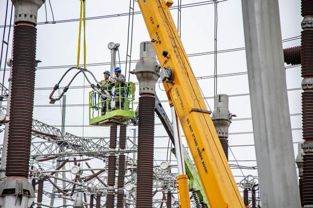 國網(wǎng)淮北供電公司職工對500千伏濉溪變電站的電流互感器開展綜合檢修。王磊攝