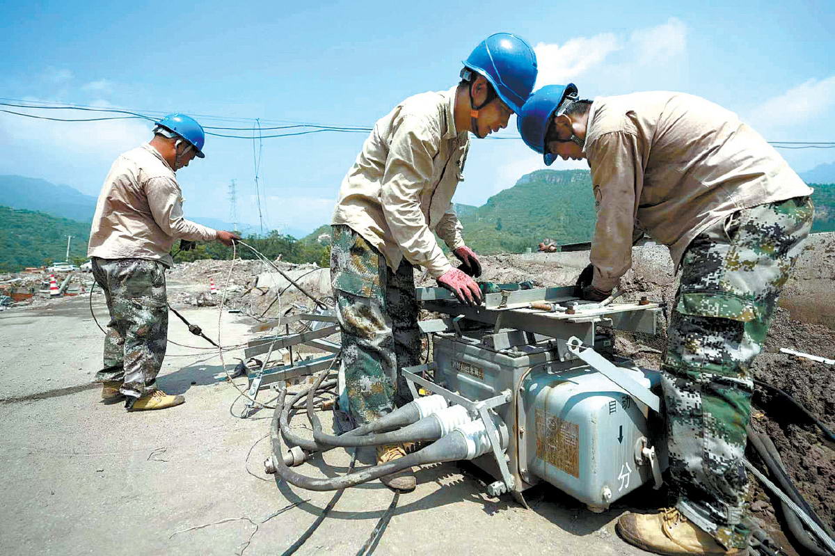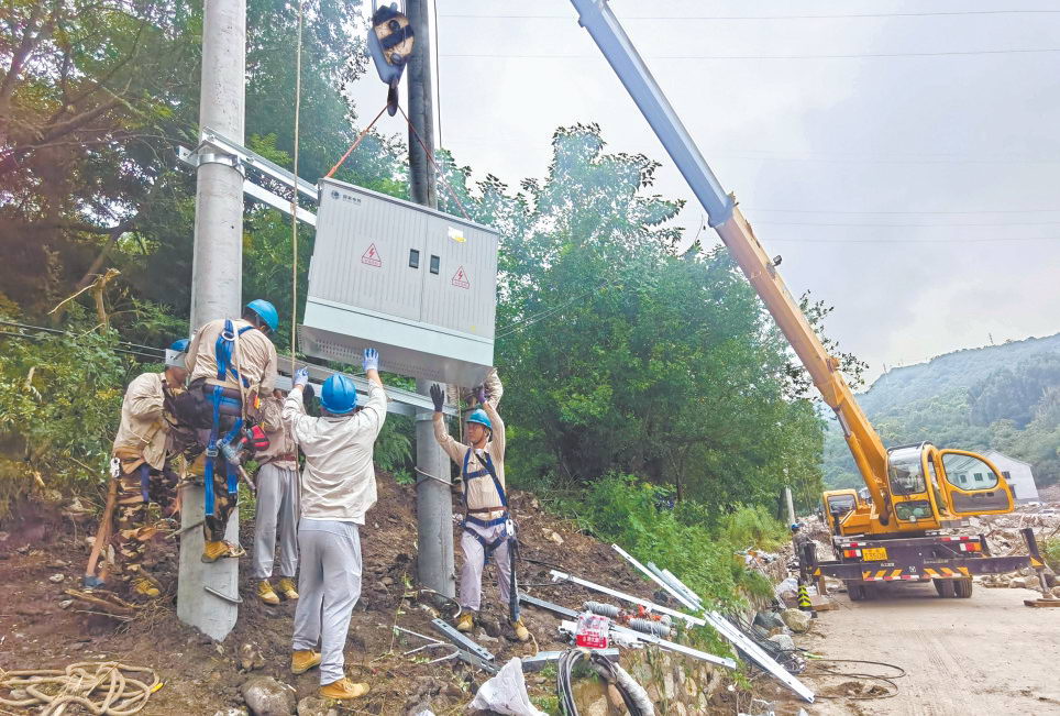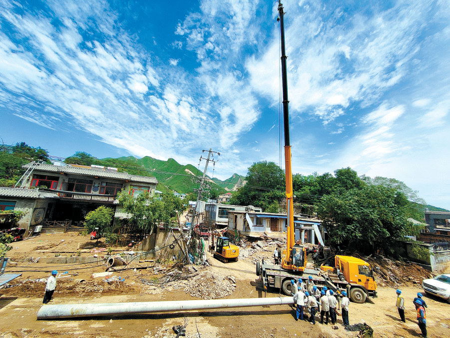 朝陽(yáng)區(qū)搶修團(tuán)隊(duì)在門頭溝王平鎮(zhèn)南澗村對(duì)部分受損線路開展復(fù)電搶修。張文靜 攝