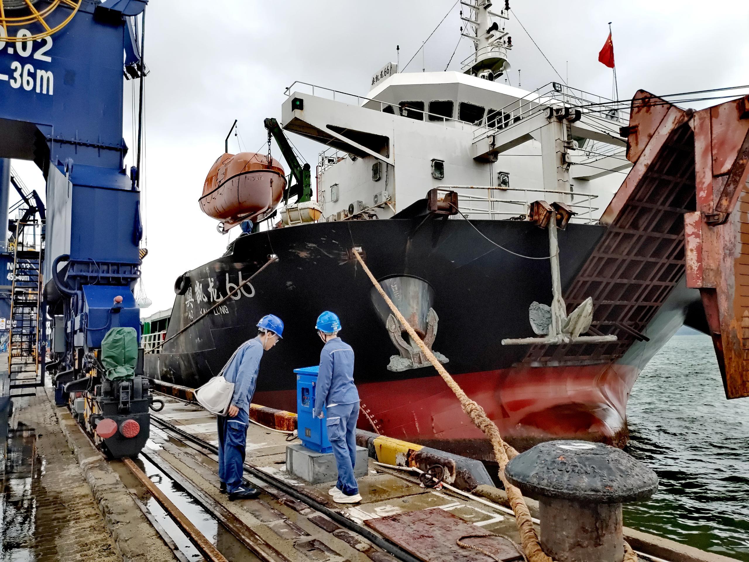 南方電網(wǎng)廣東惠州大亞灣供電局工作人員檢查港口岸電供電設(shè)施運(yùn)行情況