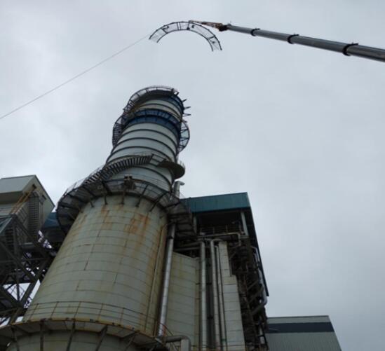 晉江氣電#1余熱鍋爐煙囪平臺斜撐更換順利完成起吊工作