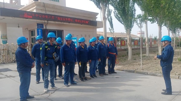 演練前,工作負(fù)責(zé)人段宗輝進(jìn)行了活動流程介紹。本次演練模擬在阿拉爾市北線一號閥門井內(nèi)進(jìn)行作業(yè)時人員進(jìn)入井內(nèi)作業(yè),雖已進(jìn)行通風(fēng)、氣體檢測,但因管道突然涌出大量污泥,擾動后的淤泥散發(fā)出有毒氣體,導(dǎo)致井下作業(yè)人員氣體中毒。