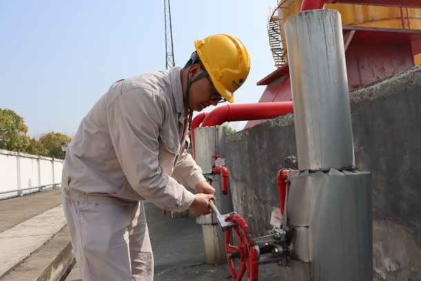 演練現(xiàn)場模擬池州電廠燃油罐區(qū)發(fā)生火警信號,值班員調(diào)看監(jiān)控畫面,發(fā)現(xiàn)燃油泵房區(qū)域有濃煙,立即安排巡檢現(xiàn)場勘查并進行初期處置,同時撥打公司消防電話報警求援,并將情況匯報至電廠應(yīng)急辦公室。該電廠立即啟動燃油罐區(qū)著火事故應(yīng)急預(yù)案,成立現(xiàn)場應(yīng)急指揮部,緊急調(diào)集各應(yīng)急小組增援。消防隊第一時間趕到現(xiàn)場,由泡沫消防車出“一車兩槍”對著火區(qū)域進行覆蓋滅火。運行控制組、設(shè)備搶修組采取應(yīng)急隔離措施,安全保安組組織警戒和人員疏散,防止事故擴大。整個演練過程迅速、及時、有條不紊,各部門配合緊密,達到了預(yù)期效果。