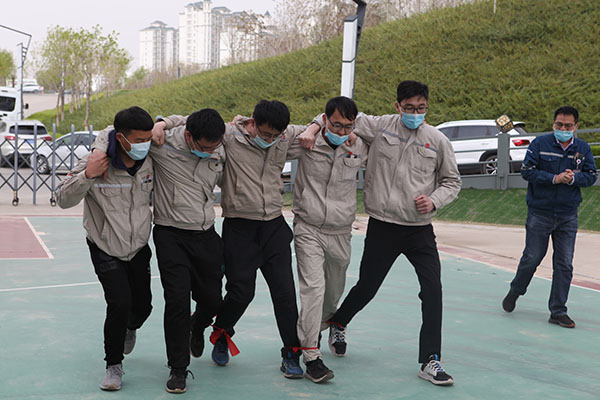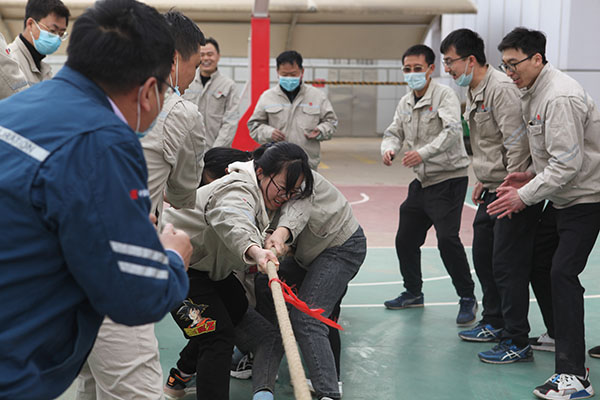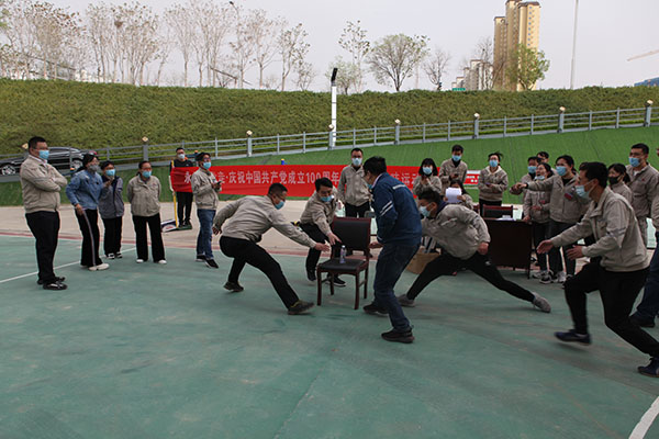 活動由《五人六足跑》《合作共贏》《黨史知識我知道》《紅歌接力》《拔河大賽》等5個項目組成。在《五人六足跑》《合作共贏》項目中,將各參賽隊員的默契表現(xiàn)展現(xiàn)的淋漓盡致,他們齊心協(xié)力、團結一致,充分展示了廣大職工充滿活力、拼搏向上的精神面貌?!饵h史知識我知道》《紅歌接力》項目將整場活動推向高潮,尤為突出的是廣大職工掌握黨史知識的扎實度,每遇一題,各參賽隊反應迅速,競相展開黨史知識作答,正確率高、回答速度快,比賽中難分伯仲。在《拔河大賽》項目中,各隊都顯示出最強的比賽陣容,只見隊員們緊握長繩,卯足了勁拼命往后拉,哨子聲、吶喊聲此起彼伏,現(xiàn)場氣氛異常激烈。