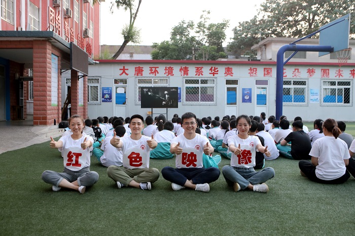 紅色觀影感懷。大唐環(huán)境為華奧學校捐贈影音播放器材,由該公司志愿者組建“紅色映像”放映隊,精選《小兵張嘎》《地道戰(zhàn)》等經典紅色電影,課后傍晚在學校的操場上,為在校住宿的學生播放露天電影。在觀影現(xiàn)場,學生們全神貫注、目不轉睛地看著大屏幕,時而嚴肅緊張,時而默默落淚,深深被電影中跌宕起伏的英雄故事所震撼和吸引。放映結束后,孩子們對電影情節(jié)展開了熱烈地討論,在感受露天觀影快樂的同時,將愛黨愛國教育的種子深深植入孩子們心田,他們紛紛表示,要珍惜來之不易的美好生活,更加努力學習,回報祖國、回報社會。
