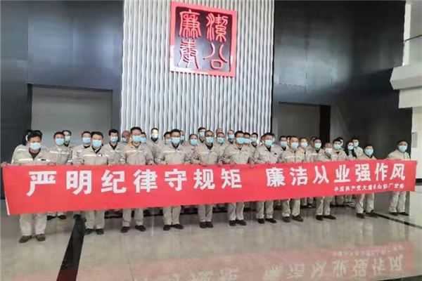 參觀前,該廠廠長作了參觀學(xué)習(xí)講話,說明了舉辦本次活動的目的和意義。黨委書記緊扣活動主題,帶領(lǐng)全體參觀人員,面對鮮紅的黨旗,重溫了入黨誓詞,讓大家接受了一次深刻的精神洗禮。