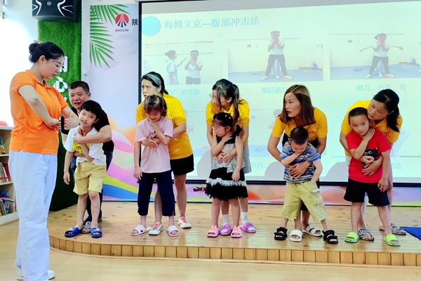 “我來試一試。”筱筱在醫(yī)生的一番示范后,積極上臺學習被氣道異物梗阻的自救方法。“醫(yī)生阿姨,我也要試一試。”孩子們躍躍欲試。“我家娃回來一直在唱防溺水兒歌,知道下水游泳需要大人陪伴。”一場專業(yè)有趣的安全知識互動課一下抓住了孩子的心。