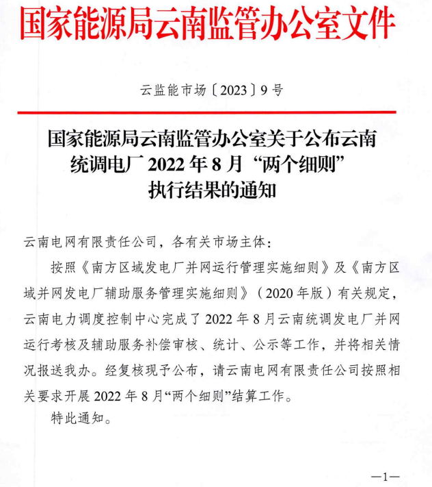 云南統(tǒng)調(diào)電廠2022年8月“兩個(gè)細(xì)則”執(zhí)行結(jié)果公布