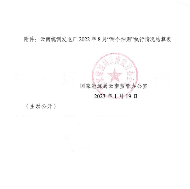 1月19日,國(guó)家能源局云南監(jiān)管辦公室公布云南統(tǒng)調(diào)電廠2022年8月“兩個(gè)細(xì)則”執(zhí)行結(jié)果。