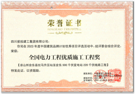 近日,在2023(第七屆)中國(guó)建設(shè)行業(yè)品牌發(fā)展峰會(huì)暨2023(第十三屆)中國(guó)建設(shè)行業(yè)創(chuàng)新發(fā)展峰會(huì)的頒獎(jiǎng)典禮上,四川能投建工集團(tuán)被評(píng)為“全國(guó)優(yōu)秀施工企業(yè)”,該公司承建的“涼山州會(huì)東縣拉馬升壓站至?xí)|500千伏變電站220千伏線路工程”獲得“全國(guó)電力工程優(yōu)質(zhì)施工工程獎(jiǎng)”榮譽(yù)稱號(hào)。