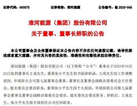 10月24日,淮河能源公告,董事長(zhǎng)王戎先生、董事張小平、職工代表監(jiān)事王亮先生提出書面辭職,辭職后,王戎、張小平將不再擔(dān)任公司任何職務(wù)。公開資料顯示,王戎,1967年出生,現(xiàn)年56歲。于2019年8月起任淮河能源黨委書記,董事長(zhǎng),此前曾在淮礦現(xiàn)代物流有限公司任董事長(zhǎng),黨委書記。