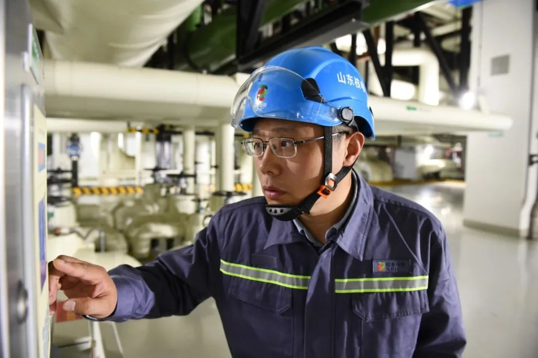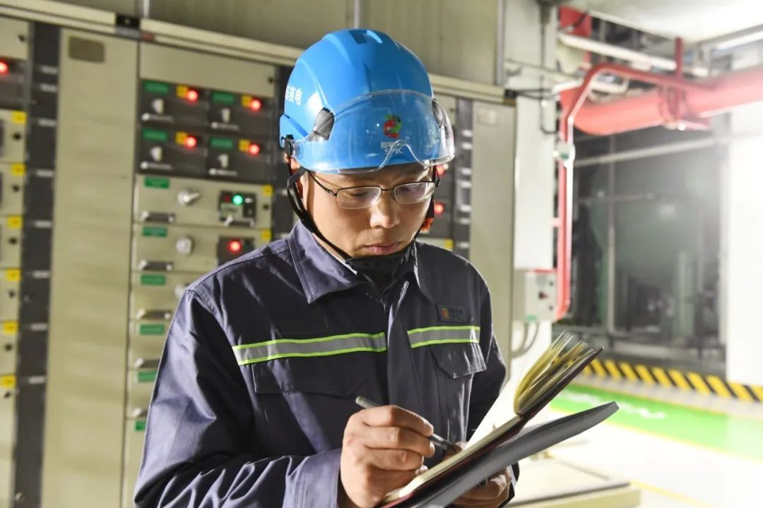 ▲張記剛在海陽核電2號機(jī)組常規(guī)島廠房記錄設(shè)備運行參數(shù)。