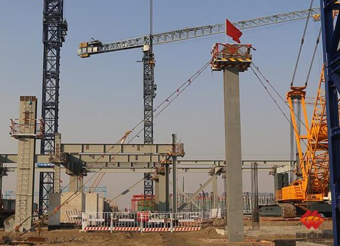 圖為第一根立柱吊裝現(xiàn)場(chǎng)