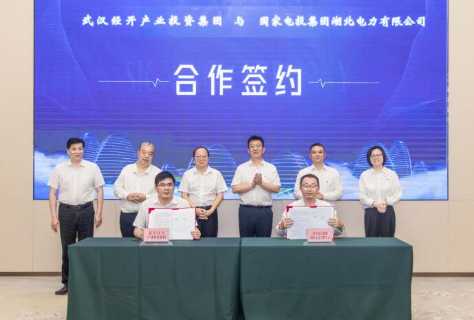 國(guó)家電投集團(tuán)湖北電力有限公司與武漢經(jīng)開產(chǎn)投集團(tuán)簽訂合作協(xié)議(央廣網(wǎng)發(fā) 李巋攝)