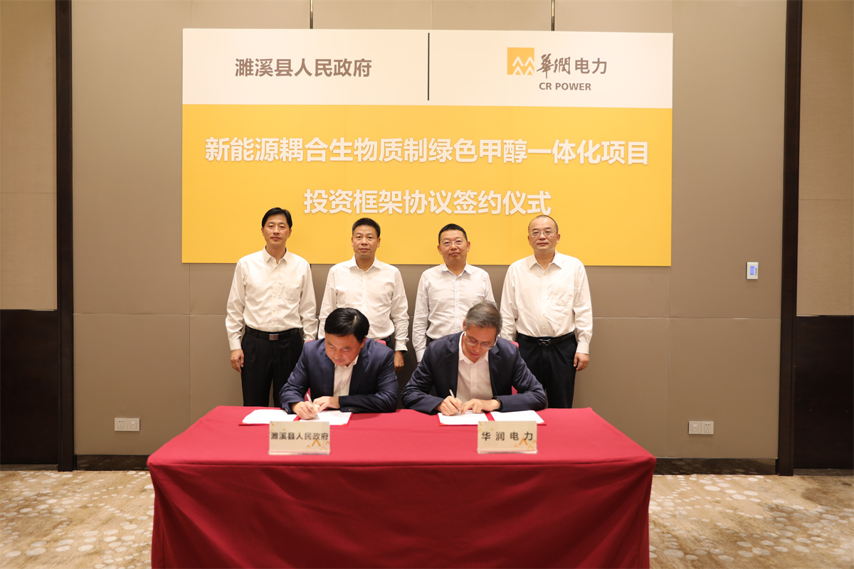 8月19日,華潤電力董事局主席史寶峰在深圳會見了淮北市委書記覃衛(wèi)國一行,雙方就拓展能源領(lǐng)域合作進行座談交流,并共同見證華潤電力與淮北市濉溪縣政府簽署新能源耦合生物質(zhì)制綠色甲醇一體化項目投資框架協(xié)議。