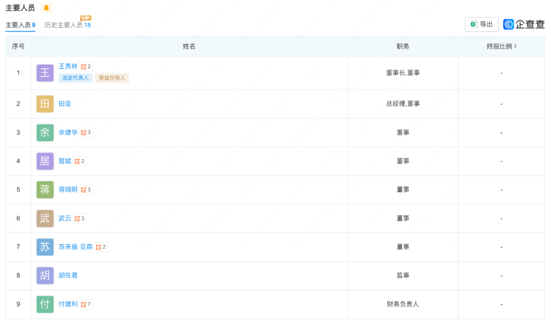 根據(jù)企查查顯示,含董事長、總經(jīng)理在內(nèi)共6位高層卸任。目前,主要領(lǐng)導為9人。其中,王秀林任董事長、田亞任總經(jīng)理。