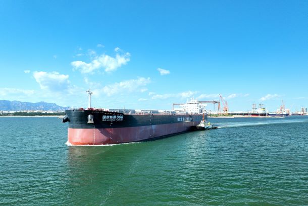 11月8日,國(guó)家能源集團(tuán)航運(yùn)公司第五艘6.5萬(wàn)載重噸散貨船(B65K-5)“國(guó)家能源606”輪在大連造船山船重工舉行命名儀式。