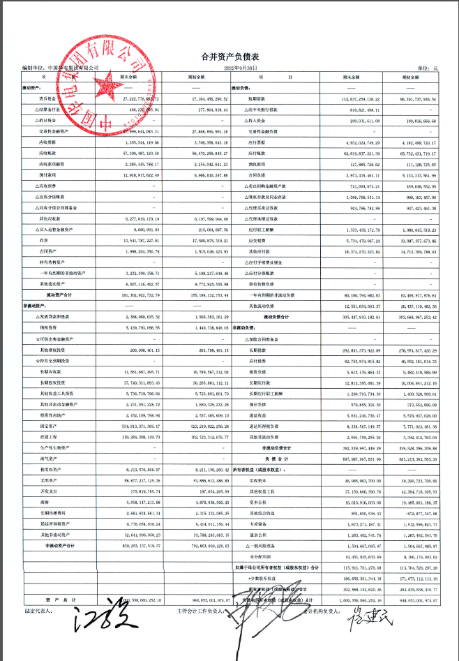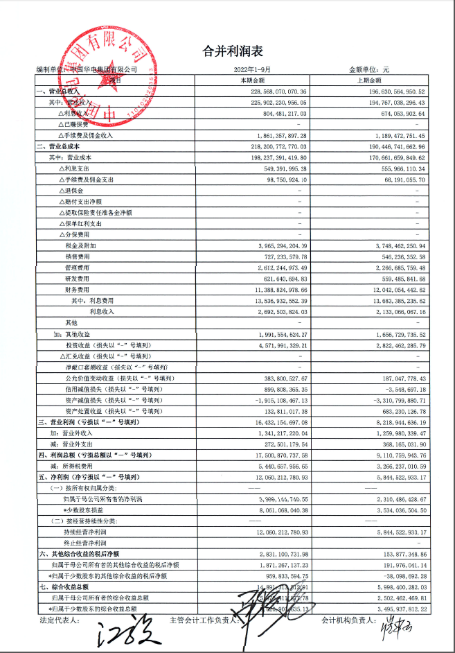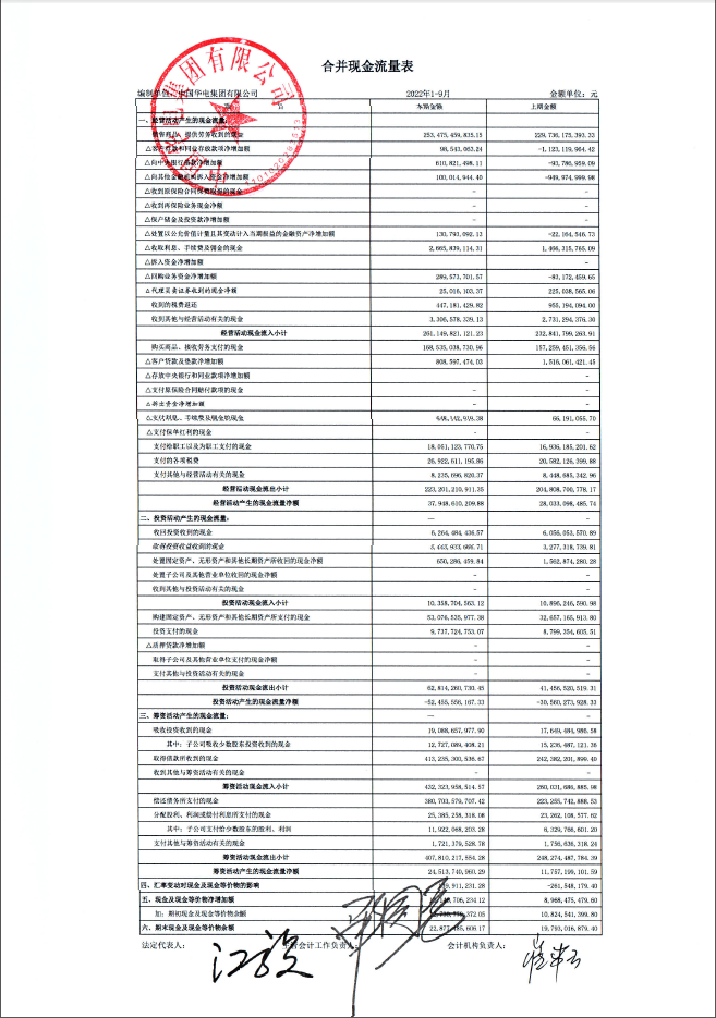 華電集團(tuán)2022年三季財(cái)務(wù)報(bào)表