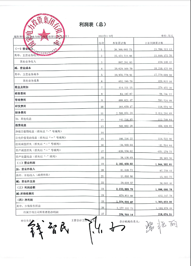 國(guó)家電投集團(tuán)2022年三季財(cái)務(wù)報(bào)表