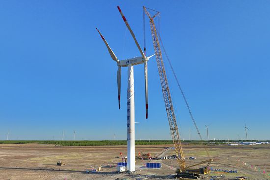 5月13日,隨著前風(fēng)輪與機(jī)艙實(shí)現(xiàn)精準(zhǔn)對(duì)接,華能自主研制的世界首臺(tái)串列式雙風(fēng)輪風(fēng)電機(jī)組“賽瑞號(hào)”在華能吉林通榆風(fēng)電場(chǎng)順利完成吊裝,進(jìn)入整機(jī)運(yùn)行示范階段。
