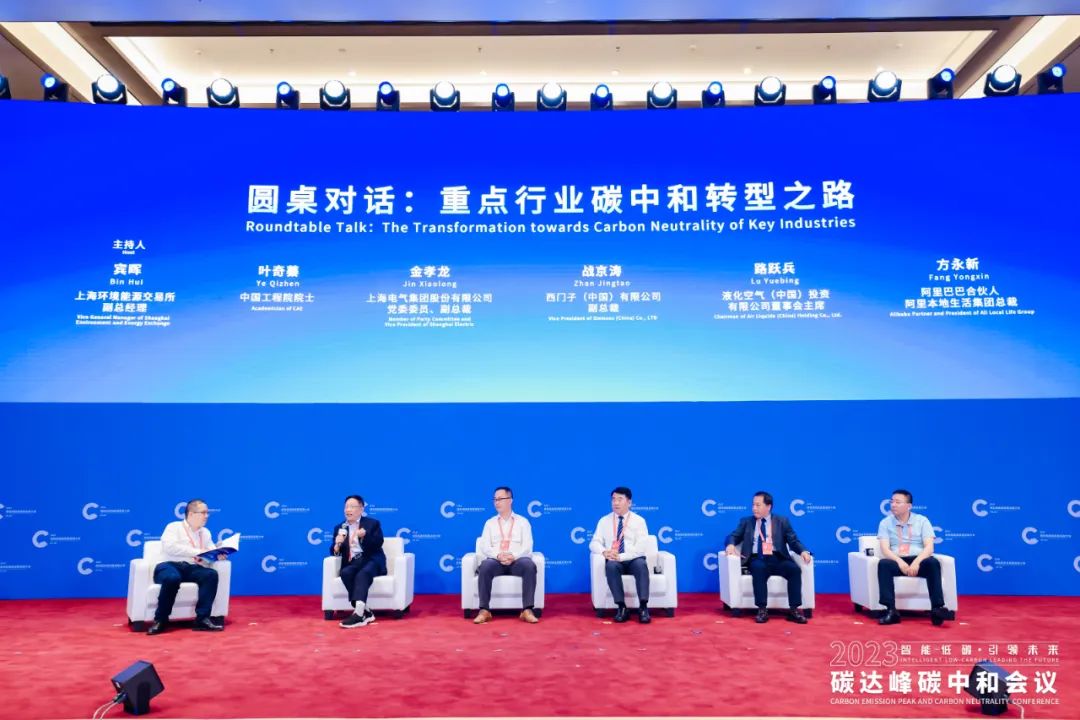 在煙臺碳達峰碳中和會議上,中國工程院院士葉奇蓁就“重點行業(yè)碳中和轉型之路”這一主題,與上海電氣集團股份有限公司黨委委員、副總裁金孝龍,西門子(中國)有限公司副總裁戰(zhàn)京濤,液化空氣(中國)投資有限公司董事會主席路躍兵,阿里巴巴合伙人、阿里本地生活集團總裁方永新展開圓桌對話。