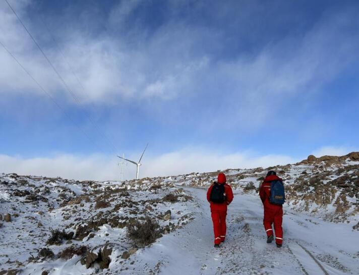 12月以來,華能新能源蒙西分公司都爾勒吉風(fēng)儲電站連續(xù)遭遇多輪降溫暴雪,為保障風(fēng)電機(jī)組持續(xù)安全運(yùn)行,筑牢能源保供防線,青年黨員們逆行而上、徒步前往機(jī)位進(jìn)行風(fēng)機(jī)檢修。