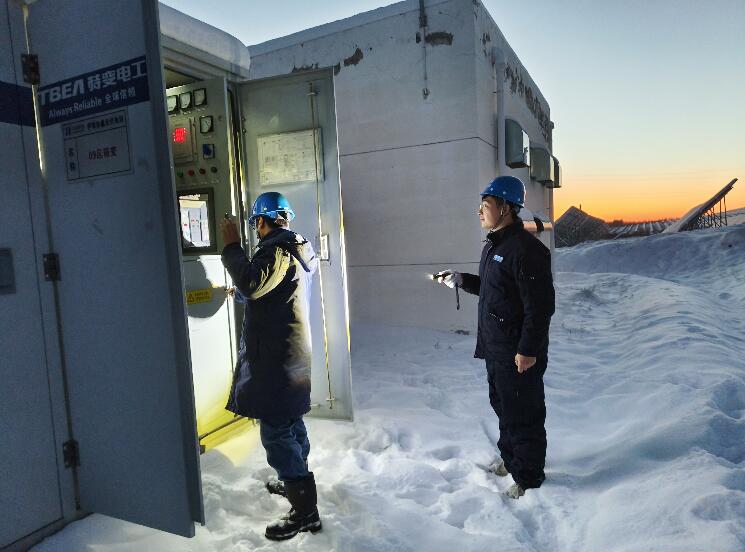 在西北部地區(qū),新疆伊犁地區(qū)日前遭遇連續(xù)降雪,華能伊犁光伏電站地處山區(qū),現(xiàn)場積雪最深處達(dá)50公分。場站立即啟動防寒防凍應(yīng)急預(yù)案,重點(diǎn)對匯流箱、箱變、逆變器、光伏板凝凍情況等進(jìn)行仔細(xì)檢查,增加巡檢次數(shù)和動態(tài)跟蹤;及時(shí)清除組件積雪,加強(qiáng)應(yīng)急值班管理,持續(xù)做好運(yùn)行監(jiān)控分析和重點(diǎn)設(shè)備專項(xiàng)檢查工作,確保電力生產(chǎn)設(shè)備始終處于最佳運(yùn)行狀態(tài),保障關(guān)鍵時(shí)刻設(shè)備安全穩(wěn)定供電。