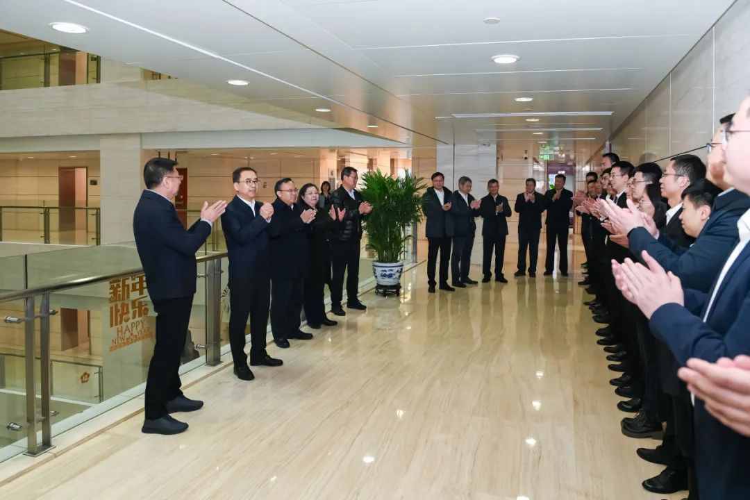 “新年好!給大家拜年啦!”“祝大家在新的一年里身體健康、工作順利、萬事如意、闔家幸福!”每到一處,鄒磊等集團(tuán)公司領(lǐng)導(dǎo)與干部職工親切交談,充分肯定總部各部門和系統(tǒng)企業(yè)干部職工過去一年的工作和取得的成績(jī),衷心感謝大家為推進(jìn)集團(tuán)公司高質(zhì)量發(fā)展所作的努力與奉獻(xiàn)。一聲聲問候暖人心田,一句句祝福鼓足干勁,讓大家倍感溫馨、充滿信心。