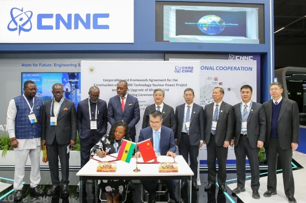 IAEA總干事拉斐爾·格羅西,世界能源理事會CEO安吉拉,WNA總干事薩瑪·萊昂,加納能源部長馬修·普倫佩,馬拉維能源部長易卜拉欣·馬托拉,法國原委會副主席皮凱蒂,加拿大核協(xié)會主席約翰·戈爾曼,法國電力公司董事長呂克·雷蒙,國家能源局總經(jīng)濟師魯俊嶺、科技部中國國際核聚變能源計劃執(zhí)行中心副主任王敏、中國電力聯(lián)合會理事長辛保安等中外領(lǐng)導(dǎo)嘉賓參觀了展臺。展會期間,中核集團與加納能源部、法國電力集團等重要合作伙伴進行了雙邊會談。中國中原與加納核電公司簽署了核電項目合作框架協(xié)議。