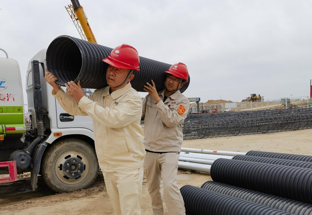 圖為六盤山電廠黨員現(xiàn)場敷設(shè)地埋管