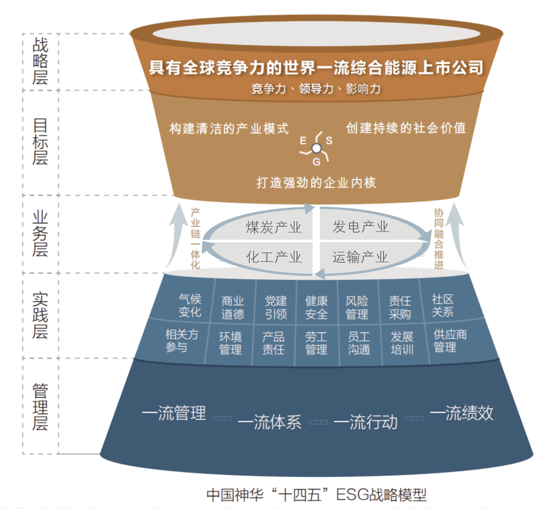 中國神華主動適應ESG發(fā)展趨勢,不斷夯實ESG治理基礎,加強ESG治理能力建設,密切關注利益相關方訴求,繪制出ESG重要性議題矩陣,有針對性向外傳遞治理表現(xiàn),推動公司本部各部門和所屬企業(yè)將ESG理念和要求融入日常生產(chǎn)經(jīng)營管理中,持續(xù)增強企業(yè)發(fā)展韌性,為傳統(tǒng)能源行業(yè)開展ESG治理創(chuàng)新提供借鑒和參考。