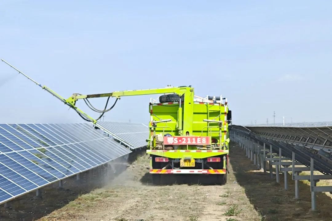 在甘肅,三峽能源甘肅分公司武威檢修中心積極應(yīng)對夏日高溫和沙塵天氣可能給設(shè)備帶來的不良影響,全方位落實設(shè)備巡檢,定期開展紅外測溫,防止高溫天氣導(dǎo)致設(shè)備過熱異常;同時,適時對場區(qū)光伏組件進(jìn)行全面清洗,盡可能避免因沙塵遮擋,影響設(shè)備出力效率。