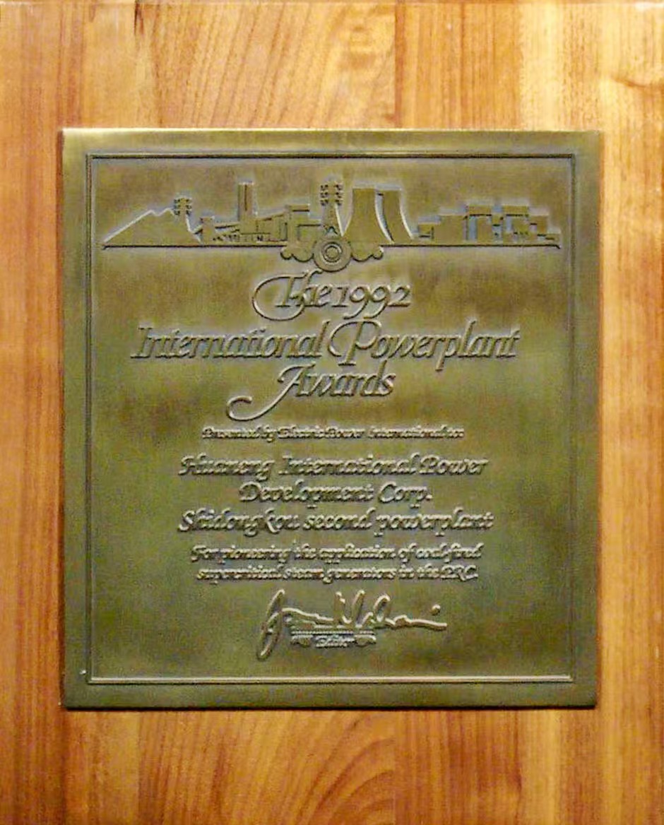 1992年10月22日,電廠榮獲美國《國際電力》雜志社評定的“國際電站獎”