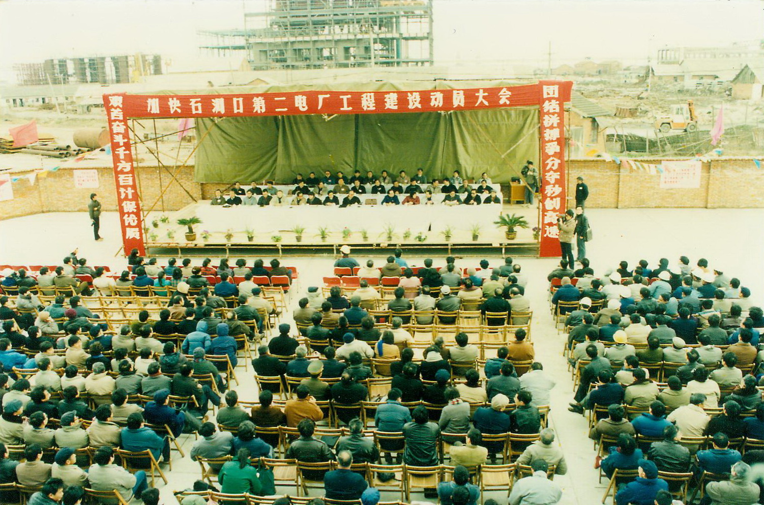 1990年2月27日在施工現場召開“加快石洞口第二電廠工程建設動員大會”