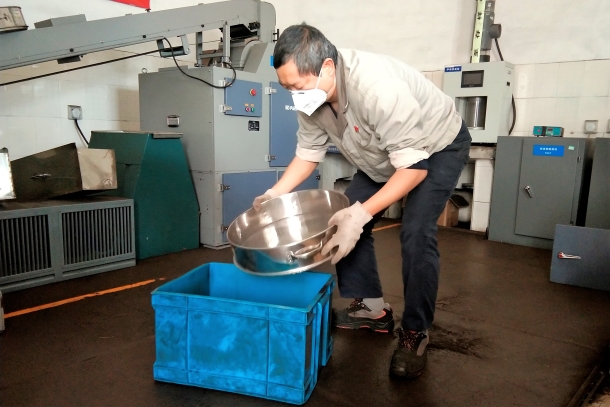 圖為該公司燃料采制員對存查煤樣抽查樣品進行制備