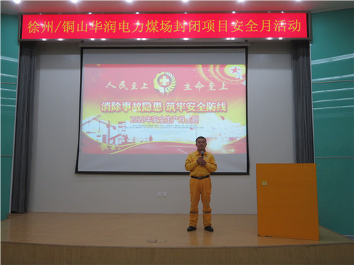 6月4日,徐州/銅山華潤電力有限公司(以下簡稱“公司”)煤場封閉項目安全生產(chǎn)月主題活動在綜合樓一樓階梯教室舉行,公司技術(shù)總監(jiān)張峰、華潤電力江蘇大區(qū)EHS部毛俊杰、公司EHS部部長杜長明、技術(shù)部副部長張建華等人到場參加。